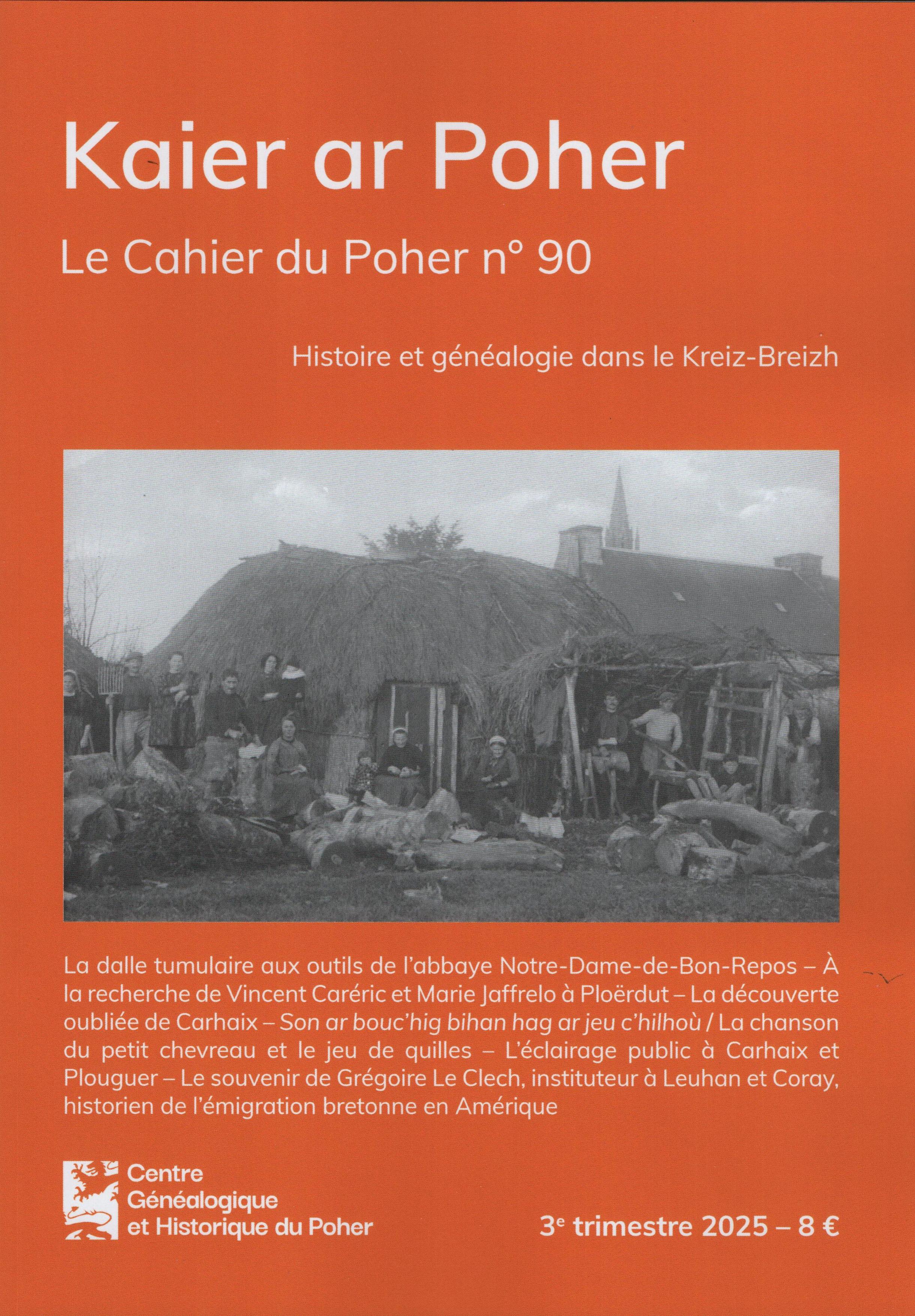 Titre : Kaier ar Poher - Le Cahier du Poher, Carhaix, Centre Généalogique et Historique du Poher, 1998-[en cours], 90 numéros en 2025.